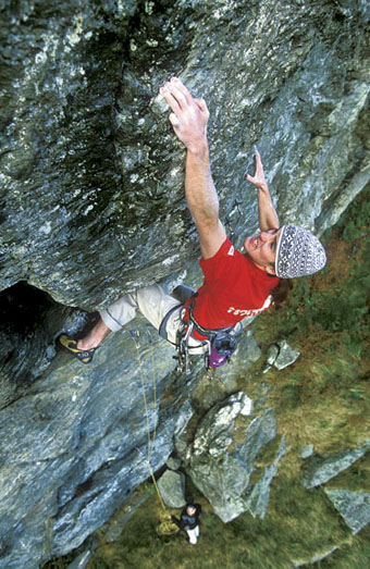Дэйв Маклеод на Ring of Steall (5.14c) в Glen Nevis. Маршрут назван по имени известной прогулки по соседству, которая проходит через семь вершин рядом с Ben Nevis.