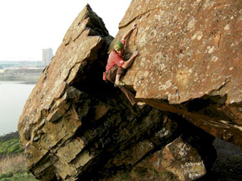 МакЛеод покоряет Saction (V13), на своей вотчине в Dumbarton Rock, Шотландия.