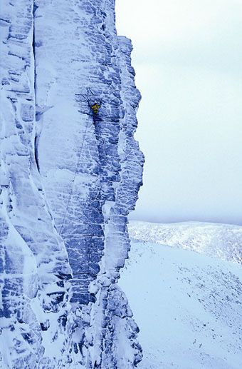 МакЛеод на Prore (VIII 7), Coire an Lochain, Northern Corries, Cairngorms - типичное шотландское микстовое восхождение, которое он сделал за 4 часа. Фото Dave ‘Cubby’ Cuthbertson — cubbyimages.co.uk |