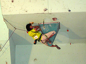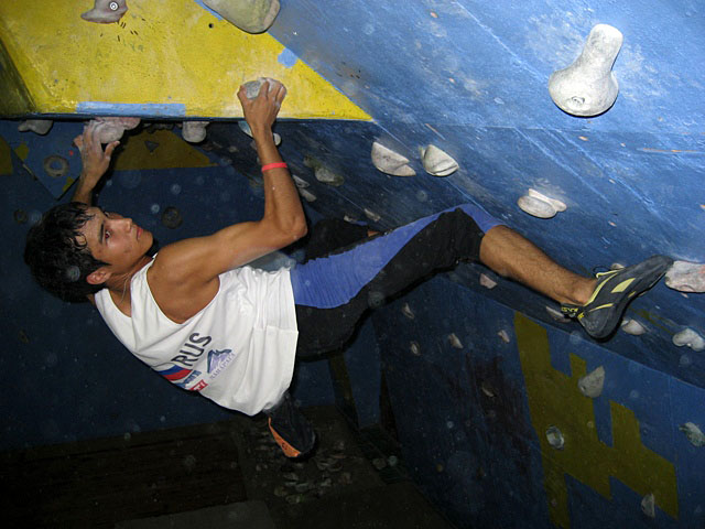 Занимаюсь я в разных клубах, но числюсь в спортивной школе. Лазаю на разных скалодромах, зависит от вида, который я в данный момент тренирую.
