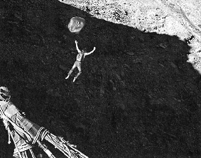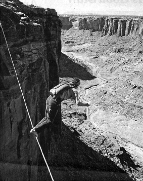 В прошлый четверг в Hell Roaring Canyon'e Поттер наконец решил, что готов пройти 180 футов по веревке, накинув на руку петельку для страховки. После двух недель тренировок он был готов к любым капризам веревки и избавился от головокружения. Подковообразная стена каньона слева была от него не более чем в 60 футах, справа ущелье расширялось приблизительно до полумили. Прямо перед собой Дин видел узкий мыс, на котором был закреплен конец веревки, и далеко протянувшееся ущелье.