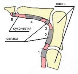 Существует два сухожилия, которые сгибают палец (сгибатели, которые идут вдоль пальца), на которые также приходится нагрузка, когда вы беретесь за зацепку. Сухожилия держатся на своем месте благодаря связочному аппарату сгибателя; серия кольцевых связок (в названии заключается смысл, эти связки окольцовывают сухожилия и крепят его к кости) идет вдоль пальца, по всей его длине. Кольцевые связки подвержены большим нагрузкам, особенно когда используется активный хват. Если силы, действующие на связки, превышают допустимые, либо внезапно происходит резкое увеличение нагрузки, может произойти надрыв связок. Степень повреждения может варьироваться от частичного надрыва отдельных связок, до их полного разрыва!