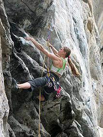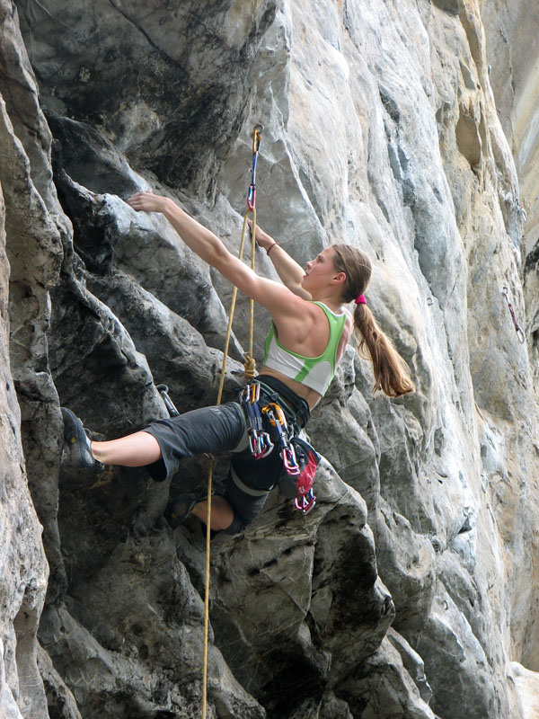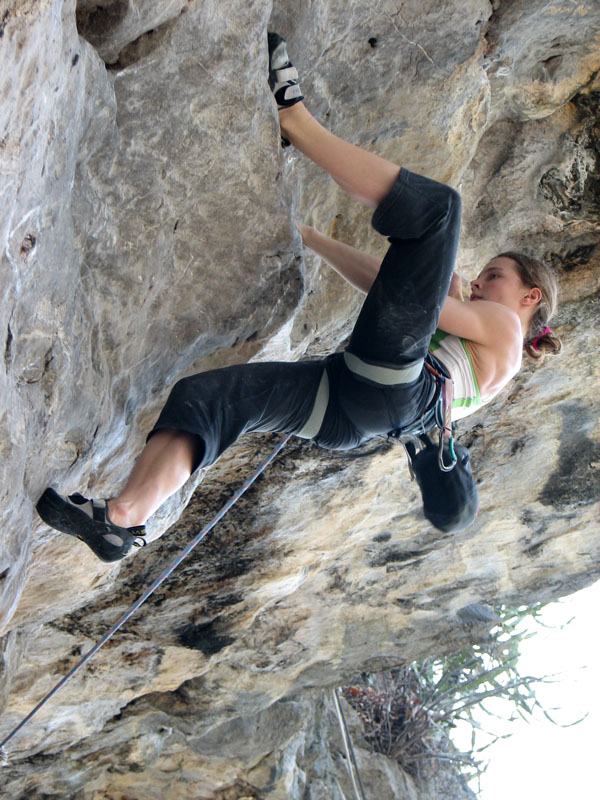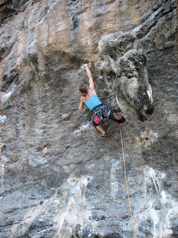 Обожаю скалы!!! В любом их проявлении: и в Крыму, и в Таиланде, и в Европе – где угодно! Получается или нет - не столько важно, сколько сам факт лазанья на скалах. На то это и СКАЛОлазание:)! Во Франции в прошлом году удалось пролезть одну 7 b он-сайтом (вроде трасса не очень сложная, всего пара ключей, но когда на одном из них у меня начал отвязываться мешочек, стало очень весело. Так и пришлось с ним в зубах до конца лезть :)) и 7с редпоинтом (трасса вообще здоровская, по нависанию. Много раз пробовала и не могла понять, почему одно движение никак сходу не выходит. Отдельно - пожалуйста, а вместе с трассой никак. Нам уже надо было уезжать, а я всё никак не пролезу её. В итоге забила на результат, расслабилась и полезла снимать оттяжки, и, как-то неожиданно для себя, взяла да пролезла.) В этом году посчастливилось съездить в Таиланд. Конечно, целью поездки был отдых от всего, но как там можно не лазить? Нашли на пляже трассу « Elephant »(8а) и давай насасывать. Никак не удавалось собрать её, но в один прекрасный момент, когда мне совсем это надоело, получилось! Так появилась моя первая 8а. В последний день удалось забороть ещё одну! Было здорово!