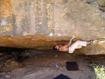 Потом я отправился в Южную Африку. Работал над очень лакомой «проблемой», но, к несчастью, ключевая зацепку сломалась … стала меньше и острее. Становилось жарче, и продолжать работать над маршрутом не имело смысла. Так что я разведал пару новых мест и пролез по самому лучшему в мире скальному ребру.