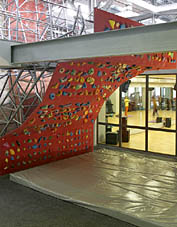 Насчет матов: мат тонкий, но мягкий - сделан по ширине скалодрома, так что падать с краю не советую - пол очень жесткий!