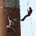 Тренировки по скалолазанию проходят на кирпичной трубе рядом со зданием