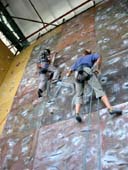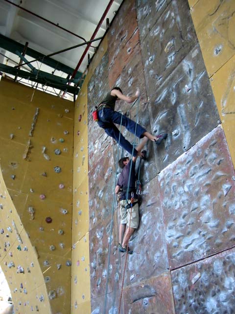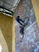и страхует напарника. Напарник добегает доверху, встает на самостраховку.
