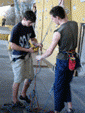 когда последняя веревка упадет на землю. Браться можно за оттяжки, веревку