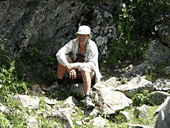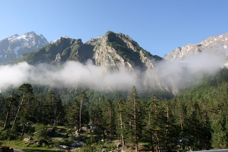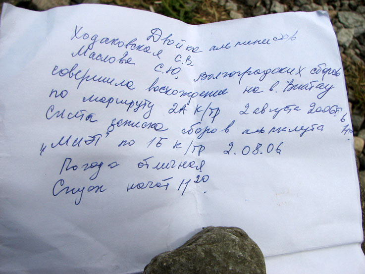 На спуске с вершины кто-то зацепил большой булдыган, который медленно набирая ход покатился вниз на Дашу. В какой-то момент стало ясно что камень пойдёт мимо, но примерно в тот же момент от камня откололась небольшая пластинка и начала скакать влево-вправо по осыпи. Предсказать траекторию движения этого объекта было затруднительно. Андрюха крикнул Даше: «Ложись!». В этот момент она и так лежала на каменной плите, но после крика создалось впечатление, что она погрузилась в камень и выдавила в нём для себя ложбинку. К счастью каменная пластинка, пролетев метрах в полутора от Даши, улетела вниз по склону. Все выдохнули. В остальном спуск как и подъём был рутинным и мало запоминающимся: кто-то падал, кто-то пускал небольшие камнепады, но без серьёзных последствий. На подходе к Зелёной гостинице попытались сомкнуть ряды, чему в немалой степени способствовали взаимные бодрящие уколы телескопическими и горнолыжными палками. Троекратное «Ура», разбор полётов, сушка трусов и других деталей одежды. Чтение художественной литературы, прерываемое приготовлением и поглощением пищи. Сон. Следующий день повторил предыдущий за исключением восхождения (которого не было) и стирки носков (которая как раз была).