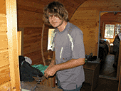 На следующий день правый трекинговый ботинок Adidas-Salomon начал просить каши с левого борта. Пошёл к Андрюхе клянчить нитку с иголкой. Нитка хорошая зелёная, очень толстая, иголка тоже хорошая, но с ниткой абсолютно несовместимая – ушко меньше толщины нитки. Бегал как ужаленный по корпусу искал «самий балшой иголка в Джантуган» – нашёл, начал шить. Никогда до этого не думал, что у меня вдруг обнаружится талант обувщика, но на безрыбье и жопа соловей. Беда подкралась как всегда не с той стороны и в самый неподходящий момент - когда до завершения ремонта оставалось 1-2 стежка иголка, при её пропихивании сквозь толщу ботинка, сломалась напополам, и тот конец, что остался в ботинке, миллиметров на 5 вошёл в палец, тот же конец, где осталась нитка, был настолько мал, что идея заточить его и использовать как укороченную версию иголки была отметена со всей пролетарской решительностью. Оставалась Андрюхина «несовместимая» иголка и полчаса времени. С помощью зажигалки и пассатижей удалось придать нитке плоскую форму, пригодную для просовывания в узкое ушко иголки. На этот раз процедура завершилась успешно.