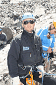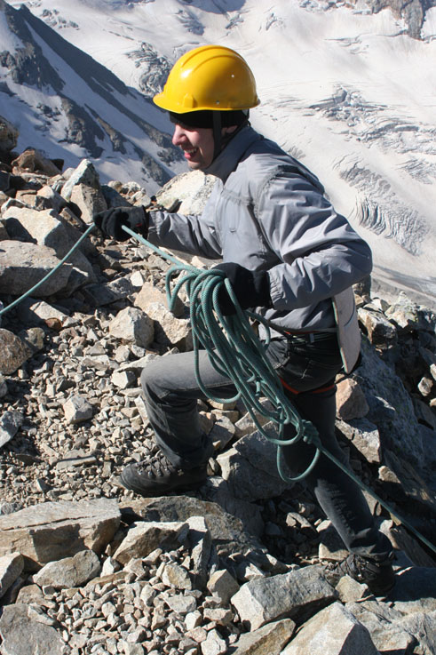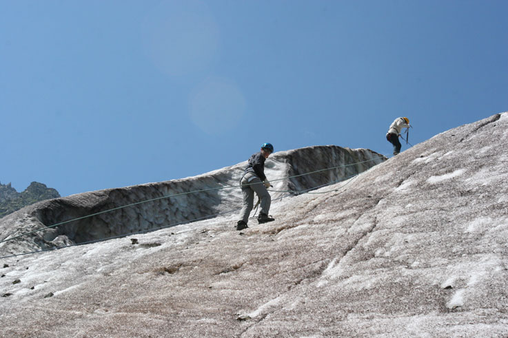 На утро пошли на ледник. Дошёл – не стошнило. Значит акклиматизация идёт в штатном режиме и абстиненция спадает. Первый раз в жизни cтупил на ледник – всё не мог поверить, что кошки держат и так, и так, и даже вот так, но ходить вниз по леднику на согнутых в коленях ногах всё ещё непривычно.