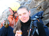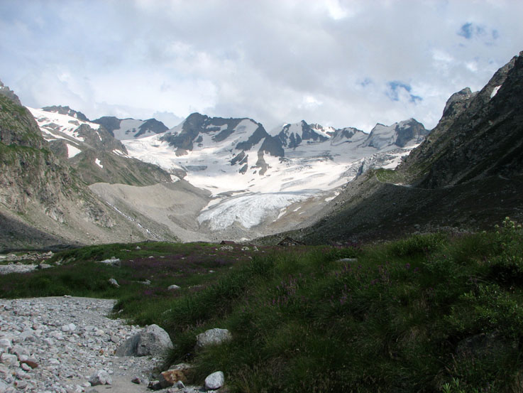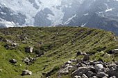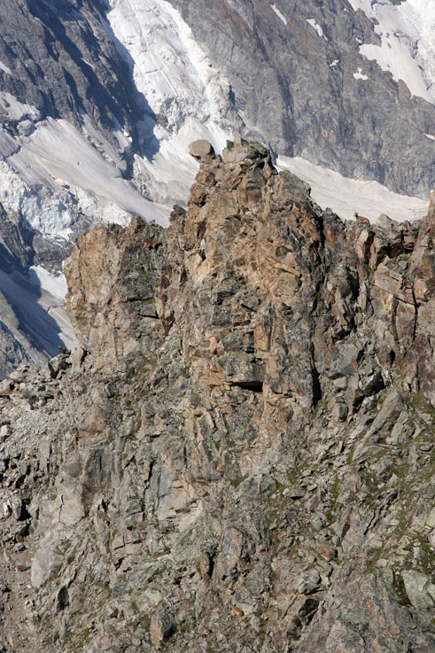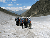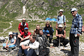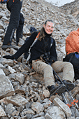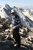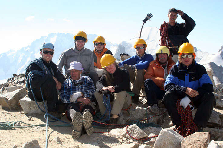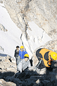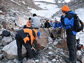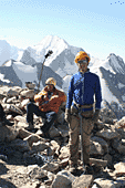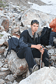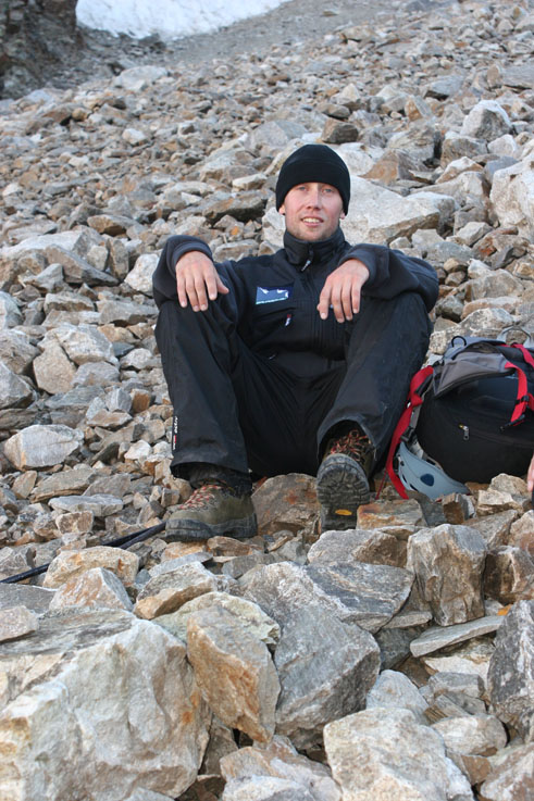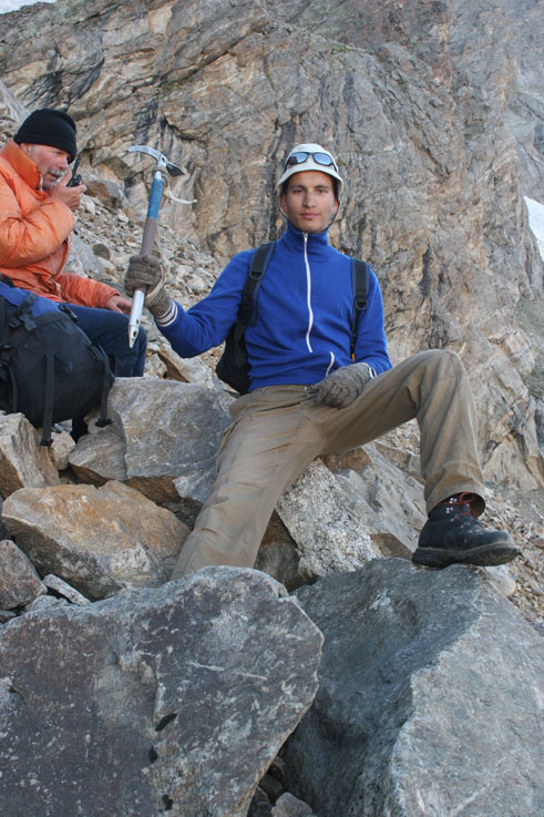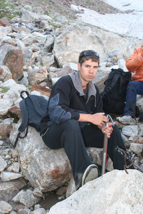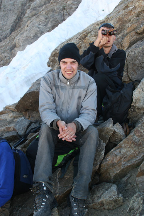 Пошли... долго блуждали переходя речку, потом поднимались на береговую морену, дошли до тёплых ночёвок и по каменистой осыпи поднялись по единичке на Виатау. Сам подъём ничем примечательным отмечен не был за исключением большого количества привалов и сопровождающего их лёгкого замерзания.