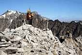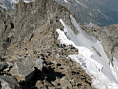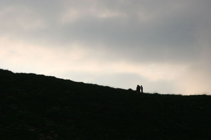 При выходе на перевал Ложный Койавган встретились с явлением, которое я назвал «вертикальное болото» - мелкие камни сыпухи лежат на раскисшем основании в результате чего, при движении по такому рельефу, на каждом шаге нога проваливается в это месиво чуть ли не по колено. Никаких особых происшествий дальнейшее восхождение не таило – вышли на перевал, организовали две связки и по гребню добрались до вершины Виатау, сняли записку (увидели в ней знакомую фамилию – Лукьянчиков), оставили свою, спустились на Зелёную. Оставшиеся на Зелёной ребята рассказывали, что речёвка маишников утром сменилась с «Жахнем! Жахнем! Жахнем!» на «Раз Рассол! Два Рассол!».