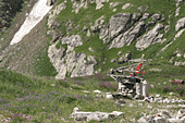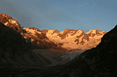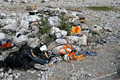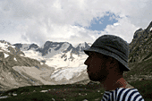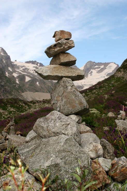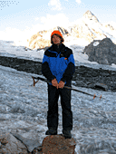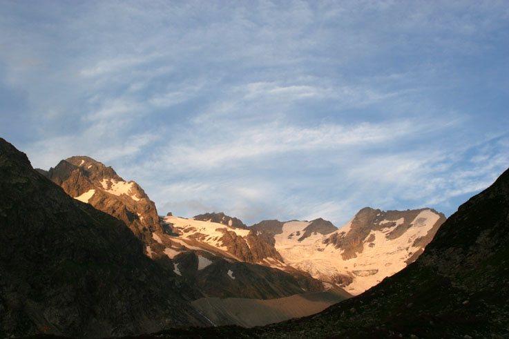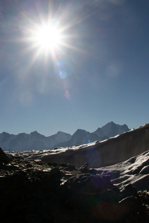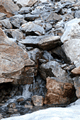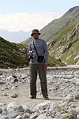 За прошедшие двое суток текущая по морене река слегка подмыла каменисто-ледовый мостик над своим истоком из-за чего время её обхода несколько увеличилось. На отдыхе одел пуховку (один раз за всё время пребывания в горах – погода была тёплая и пуховка в этот раз не пригодилась).