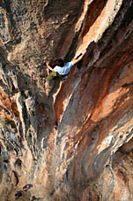 Привет сайту Баурок! Как и обещал, высылаю фотографии с первопрохода маршрута Drop City 10+/11- (8с/8c+). Этот маршрут был пройден Manuel Brun и, скорее всего, это самый сложный маршрут в Турции. Он находится в секторе Sarkit, это вторая веревка существующего маршрута Yagmur Duasi, 8- (7а), справа от Luc Skywalker, 10 (8b/8b+). Это маршрут на выносливость с тяжелым боулдеринговым участком по мизерам.