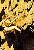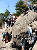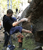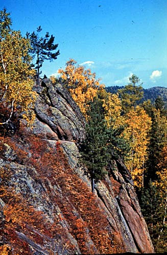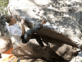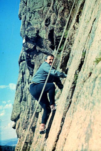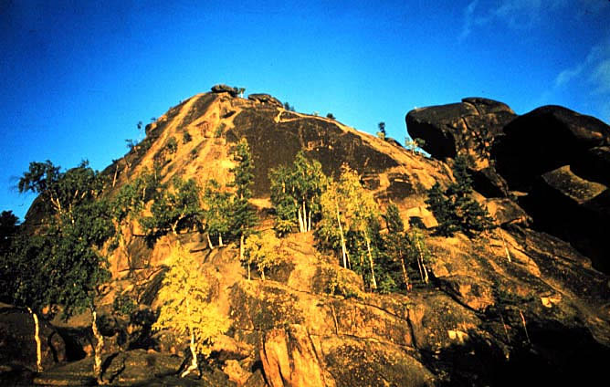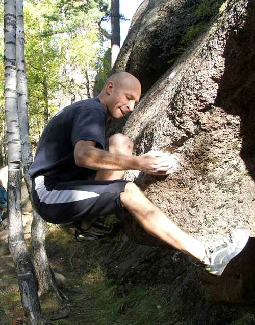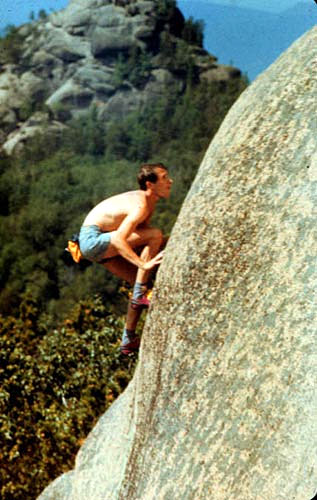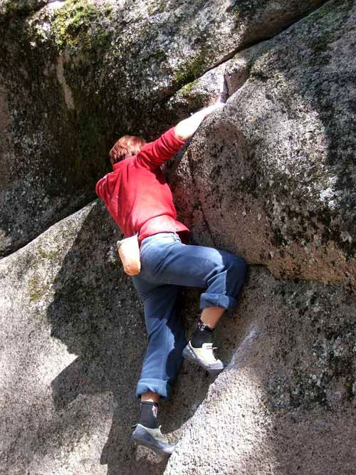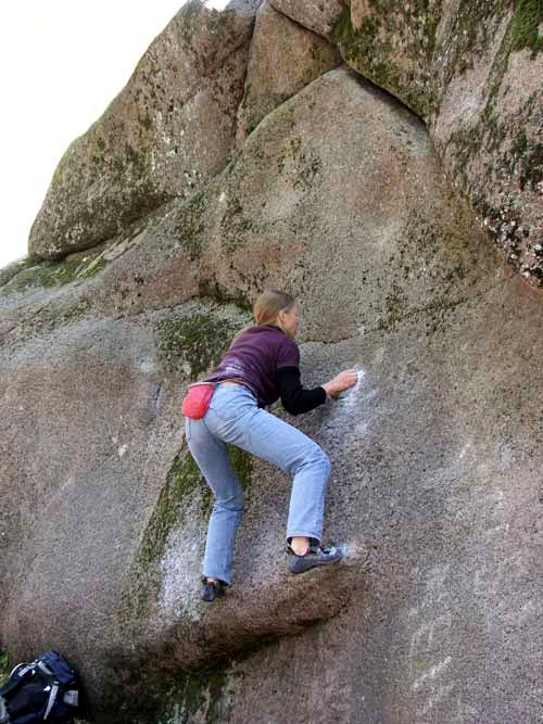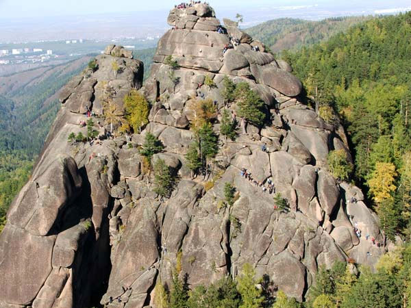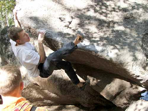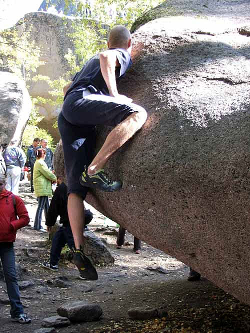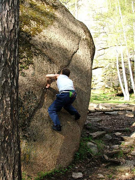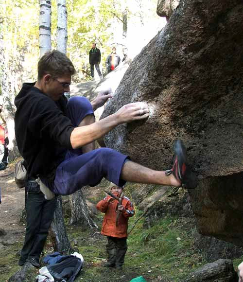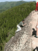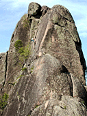 Хитрушка при вершине Первого столба. Называется "Гребешок БИФа". Вполне ходится и без верёвки. Падать далеко |