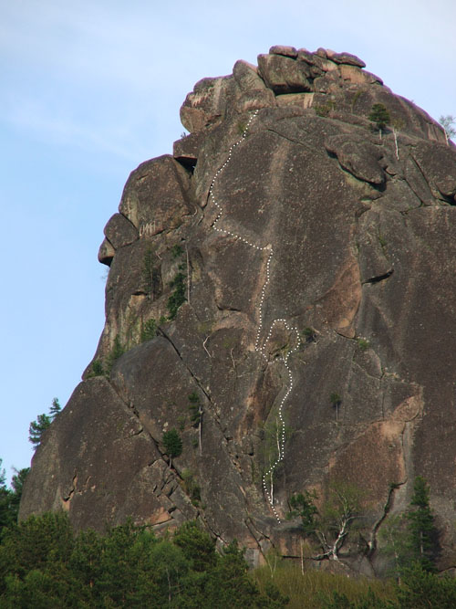 И более крупным планом ход "Мужской приз", обозначен тот вариант, который ходится свободным лазанием. На соревнованиях "Приз Столбов" трассы для мужчин и женщин традиционны и постоянны |