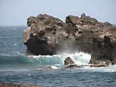 В давние времена, когда на этой земле еще не было людей, и на берег из глубин океана выползали на теплые камни только ракообразные, вдруг проснулся вулкан, коих было здесь немеряно. Вспенился он клубами дыма, закипел. Не понравилось ему, что топчут его подножие ракообразные. И выплеснул он из раскаленного жерла яростный поток огненной лавы. И, подобно огромной морской волне, понеслась та лава из заоблачных высей. Ринулась она вниз, устрашая все живое своим жаром и мощью. И затрепетали ракообразные, и взмолились они господу, ибо не хотели они без пива стать вареными! И услышал господь их молитву, и взглянул вниз, оторвавшись от дел текущих. И увидел он огромную волну раскаленной лавы, стремительно летящую вниз и грозящую погибелью ракообразным. И сказал он вулкану - остынь! И остыл вулкан, недовольно попыхивая кольцами дыма. И сказал он волне - замри! И замерла волна, вздыбившись неземной магматической силой! И застыла она устрашающе-нависающей скалой с отрицательным уклоном! И сказал господь - идите раколазы, плодитесь и размножайтесь, и на скалу с отрицательным уклоном можете смотреть издали, сидя на теплых камнях, ибо будут на ней лазать только rockолазы продвинутые! Огорчились раколазы, понурились и пошли под холодное пиво плодиться и размножаться.