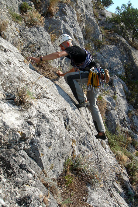 За этот выезд ко мне пришло удивительное чувство. Лезешь по скале, и тебя совершенно не волнует, страховка у тебя верхняя, нижняя, или ее вообще нет. Можешь посмотреть вниз и улыбнуться страхующему, можешь спокойно оценить – как лучше вщелкнуться, представив себе полет своей тушки вниз. И все эти действия не вызывают паники, ничто не заставляет дрожать коленки. В общем, очко заборото, ура.