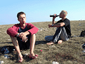 После такого захода Кант по Канту уже не воспринимался нами как нечто экстраординарное, - я окончательно растерял все страхи, связанные с работой первым, а Саня присмотрелся к работе на рельефе. В момент сбора снаряжения Шульц вынул из рюкзака две рации – Смотри, мол, что у меня есть. Негодяй! Я на шестую гору намыливаюсь, а ты молчал... В общем, следующий час мы игрались с рациями – бегали за батарейками, разбирались с кнопками и прилаживали их к системе. Я пожалел, что не было одно- или двухмиллиметрового репика – на шестерке крепить неудобно.