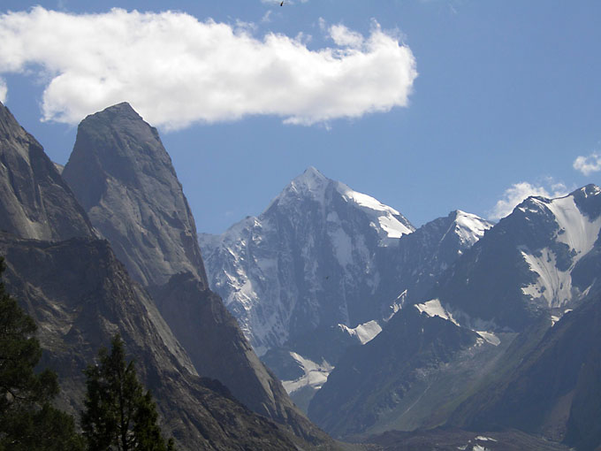 Спуск по СВ ребру. Ночевка на спуске на стандартной ночевке ниже плеча Асана. От ночевки до БЛ 4 часа.