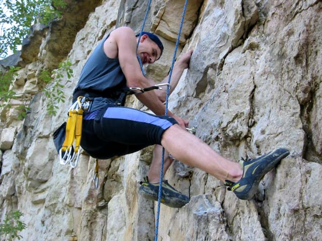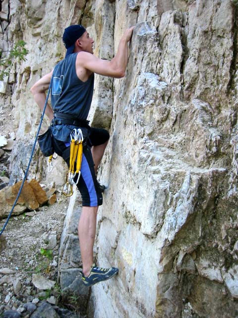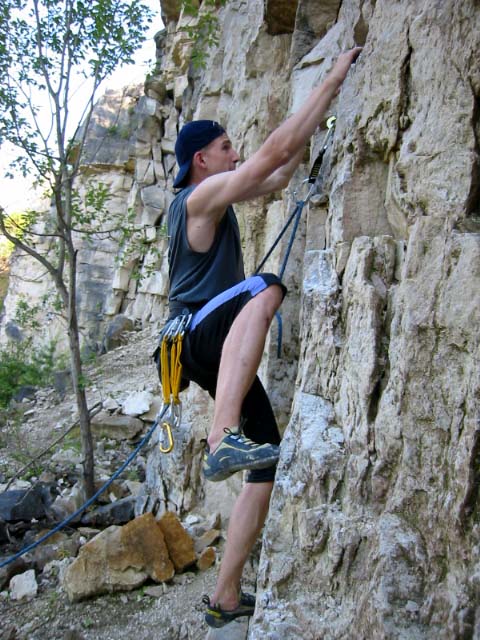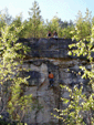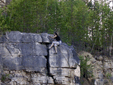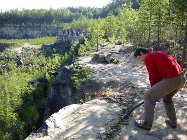 Исходно у поездки было две цели: полазать и попытаться пробить маршрут. Как делать первое, мы примерно знали, что насчет второго, опыт отсутствовал, так что начинать приходилось с нуля. Для маршрута была закуплена станция о двух кольцах с цепью и карабином, взяты у СБ шлямбурные уши и анкеры, куплен герметик, а также цемент, на случай, если маршрут придется усложнять. Помимо этого в багажнике покоился дизель-генератор и перфоратор. В час дня, помятые долгой дорогой, но довольные, мы прибыли в карьер.
