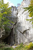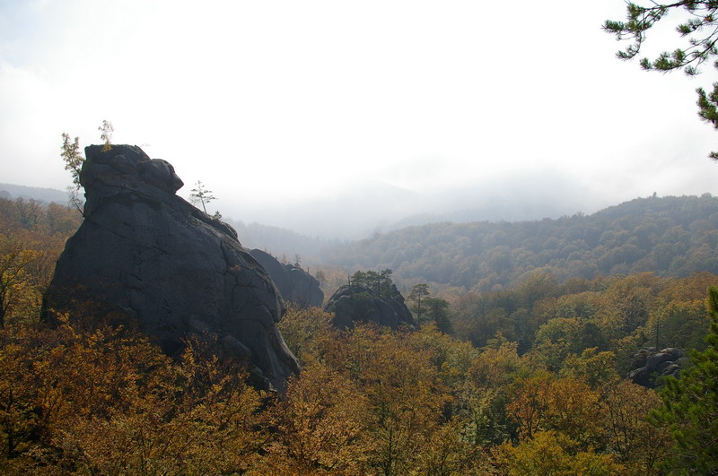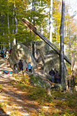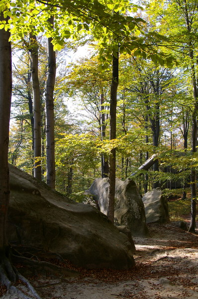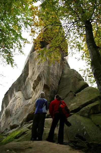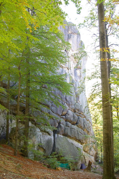 Поначалу, когда только, только попадаешь на Карпаты, совсем не понимаешь, где же тут можно лазать, но когда сваливаешь с дороги и видишь все то великолепие... Скалы высотой по 50 метров и разбросанные между ними боулдеринговые блоки невероятной формы и попросту фантастической фактуры... В общем, когда я все это увидел, начал недленно захлебываться слюной. Как сказал бы ПП: "Столько всего вкусного!!!"