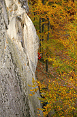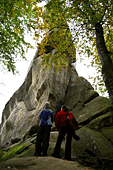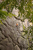 На второй день предлагалась трудность – тот же песчанник только вверх. К сожалению, не помню сколько трасс было заявлено, но довольно много – опять таки времени было гораздо меньше. И диапазон категорий опять был довольно большим – от пятерок до восьмерок. Результат учитывался только при прохождении трассы, то есть если срываешься из под последней оттяжки результат у тебя все равно нулевой – обидно, но стимулирует, кстати, не хило – готов цепляться зубами, лишь бы не улететь сверху! Супер!