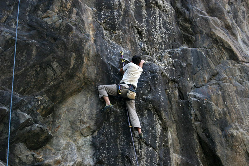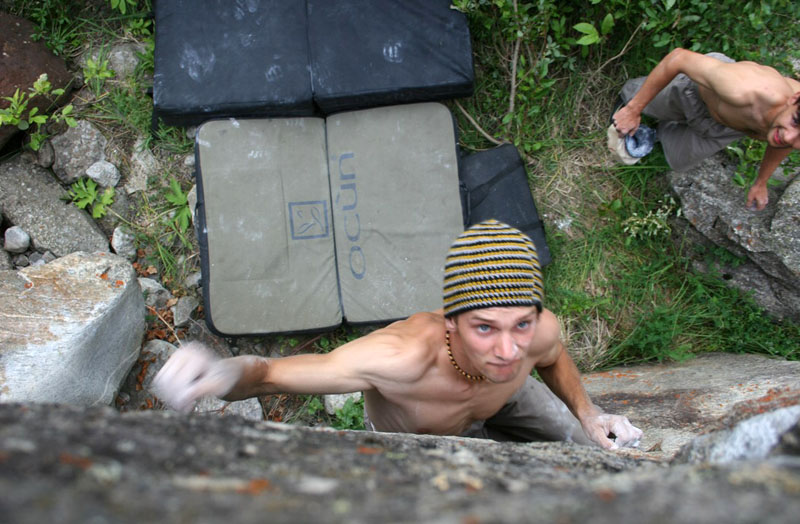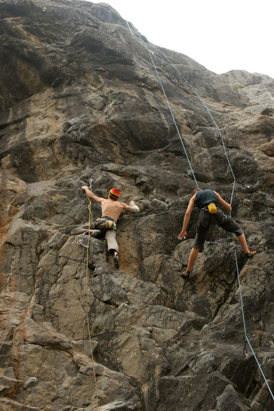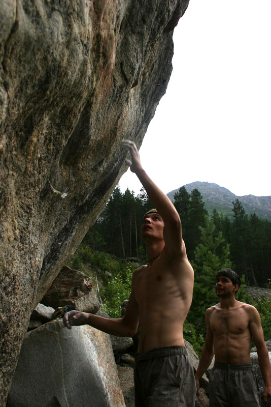 Слева Митяй на Мокрых Ногах 7б, справа Гнеа на Первом 6б