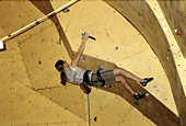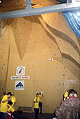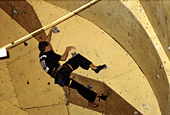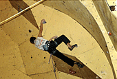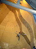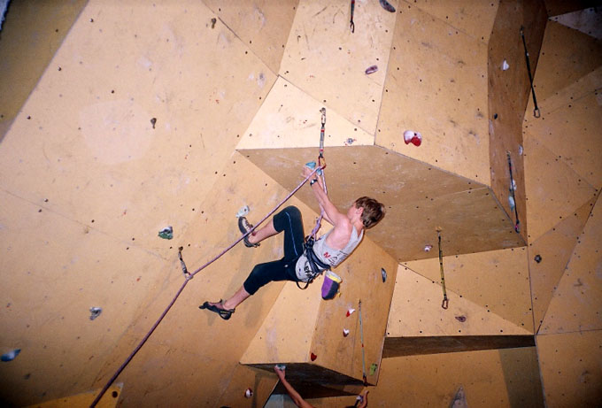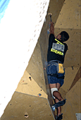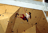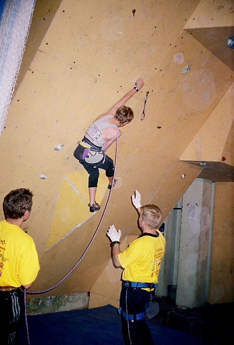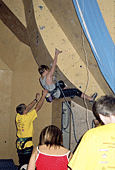 Ты, наверное, знаешь, что этот скалодром был построен совсем недавно. Расскажи о его качествах. Он занимает не очень большую площадь, но имеет много различных нависаний и карнизов. Щиты гладкие, без рельефов, а трение нельзя назвать ни хорошим, ни плохим... Я бы сказал среднее. Очень порадовало то, что у скалодрома есть большой потолок. А еще очень много места для зрителей, которые поддерживали меня;) и всех остальных участников.