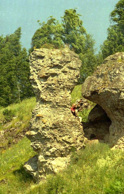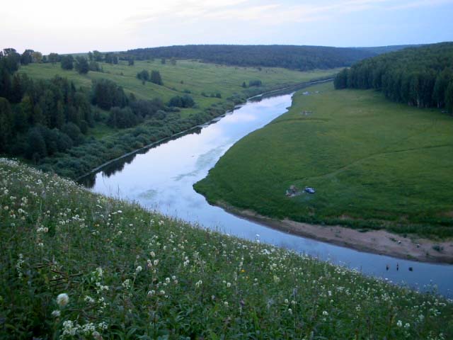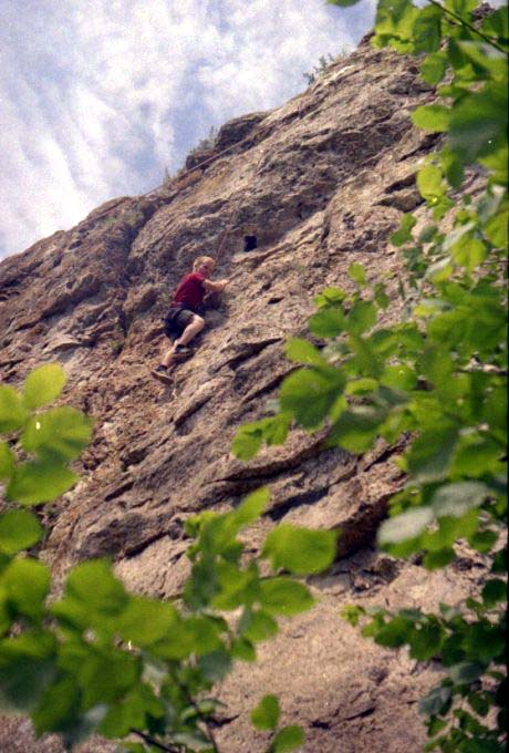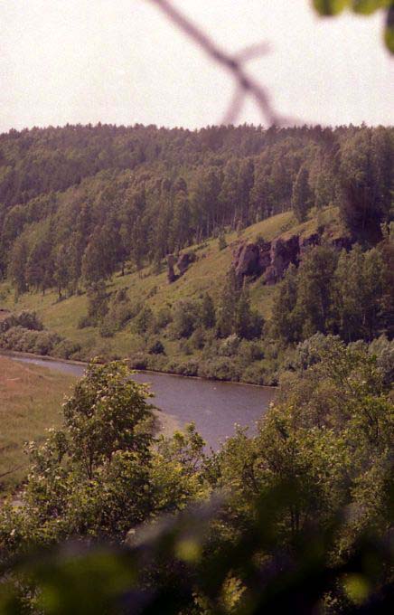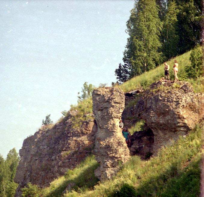 Итак мы на скальнике. Рядом по обоим берегам стояли палатки отдыхающих из Кирова. Мы тоже поставили палатку, искупались, и пошли к скалам. По дороге встретили людей в обвязках, потом выяснилось, что они из