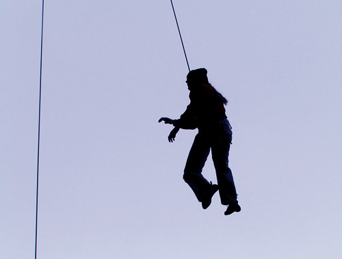 Как я ни уговаривала народ попробовать — отважились повторить это безумие лишь немногие. У Шульца получилось очень здоровско — он вылез метра на 2 выше меня. Но всех превзошел Коляныч!:) Вот в ком скрывался истинный царь и бог драйтуллинга!
