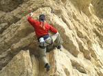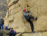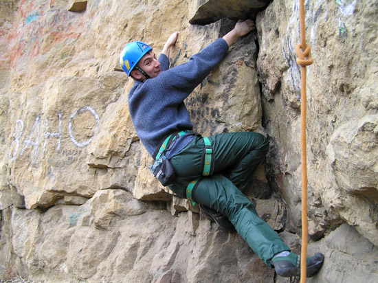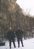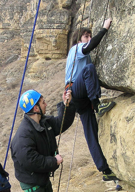 Ныне нам предстояла поездка на скалу Острую близ Пятигорска, а точнее – около г. Лермонтова. Дорога заняла приблизительно час на газели. Погоды стояли прекрасные — чистое голубое небо, солнце, тепло — градусов 5-10! Наш скалолазный оптимизм лился через край, так что, чтобы поумерить пыл, мы с Ниной всю дорогу изучали Men’s Health и Playboy. Однако, когда мы подъехали к скале, весь оптимизм сдуло как ветром — дорожки находились на не освещенной солнцем стороне, и там был реальный дубак! Камень — практически обледеневший. Вот досада! А ведь там были классные пробитые маршруты - начиная от 5b и заканчивая 7b+, подготовленные Александром Чепрастовым (Ростов-на-Дону) и нашим замечательным гидом - Юрием Гавцем. Шульц отмочил при осмотре маршрутов: «А вот этот... не могу разглядеть, сколько он – 6а или 8а?» :))