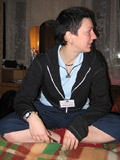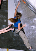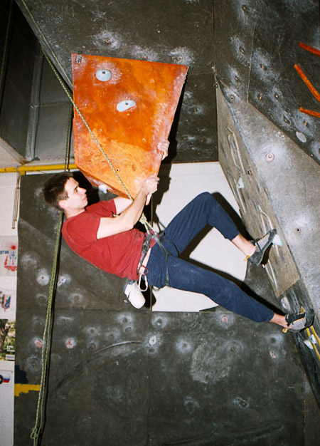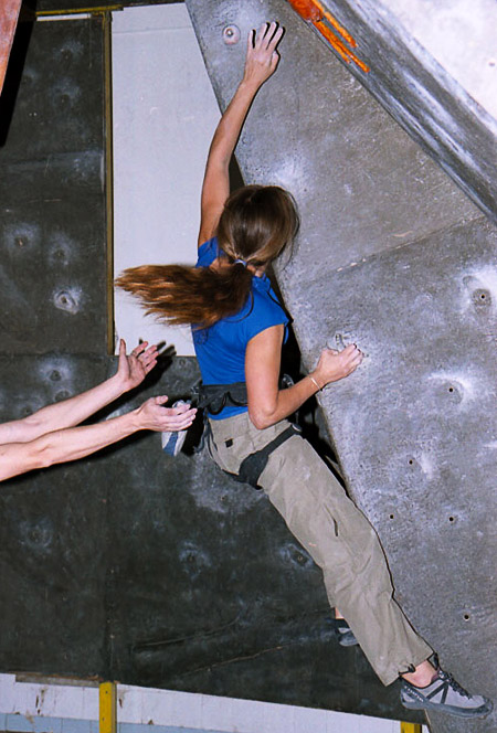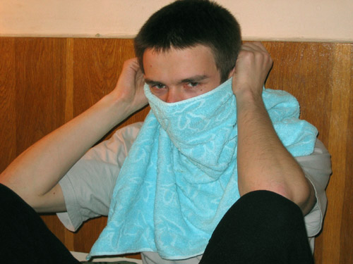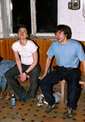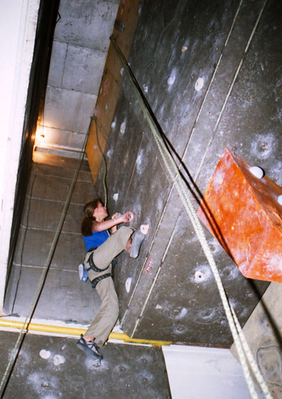 Возможно, вы удивитесь. Но наши скалолазные похождения на этот день не были завершены! Откушамши ужина, состоящего опять большей частью из тушеной капусты, мы отправились на местный скалодром, который находится в здании МЧС. Это поразительно, насколько изобретательны и умелы люди, не избалованные, как мы, фантастическим разнообразием и несусветной плотностью скалодромов на квадратный километр! Совсем небольшое помещение используется на все 100% - есть болдеринговые стенки, одна высокая стенка, уходящая метров на 6 вверх в трубу (наподобие внутренней части нового модуля в ДДС), пара шлямбурных дорожек, турник, систем-борд и даже СОСУЛЬКА (которая тут же стала объектом домогательств нашего народа). С инструкторами же нам вообще повезло: мне помогала советами сама Лидия Правдина из Ростова – мастер спорта по скалолазанию и просто очень обаятельная и приятная женщина. Из недостатков скалодрома – весьма скудно покрыт матами пол; при срыве с одной из стенок маятником уходишь прямо в окно. Но в целом скалодром отличный; от всей души желаю ему процветания.