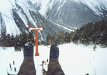 заснеженный противоположный склон. Вдалеке на другой стороне виднеется небольшой