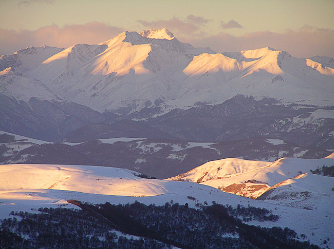 гирлянд, в тумане посленовогоднего похмелья лихорадочно соображаю – взять 4 или 5 пар перчаток? Во что упаковать кошки? – ну конечно же, в пуховку, по классике! :) Поездка на зимние скалы в Кисловодск – мероприятие, требующее серьезной подготовки, так что – еще глоток коньяку для ясности мысли не помешает. Со вздохом отложив до майских всякие легкомысленные эротические маечки и топики, скармливаю рюкзаку свою боевую тельняшку и пару теплых поларов. Он чавкает, довольно урчит – и, хотя его брюхо уже полно, - требует еще. А вот, получи! – заталкиваю в его ненасытную утробу и утрамбовываю ногой с десяток шерстяных носков (все-таки зимнее лазание это вам не шутки!). Теперь очередь коронного блюда нашего пиршества: изящно изогнутые лебединые шейки тяпок Grivel Wing под соусом бешамель – бережно оборачиваю их клювики вышитой крестиком тряпочкой, нежно обнимаю на прощание (скажите, доктор, фетишизм – это смертельно?). Спасибо преогромнейшее дорогому другу Сереже Веденину, что дал дитю свои тяпки поиграться :) Сверху кидаю недоеденные после новогодней оргии бутеры с красной икрой, остатки торта, десять миллионов тонн конфет, - и в путь! Надо ли говорить, что я отправлялась, как обычно, в полную неизвестность?