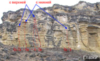 инструментам. Скалы высотой метров 40-50, лежат горизонтальными пластами, чем