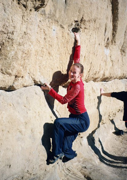 Самые буйные хроники отправились сами догадайтесь куда? Правильно — опять на скалы, решили долазивать «Глазки». Что поделаешь, если наш диагноз (разумеется, после хронического алкоголизма) - "хроническое лазание" :) К тому же погода выдалась просто сказочная - никогда не думала, что в России, 8го января смогу лазить практически топлесс! :)