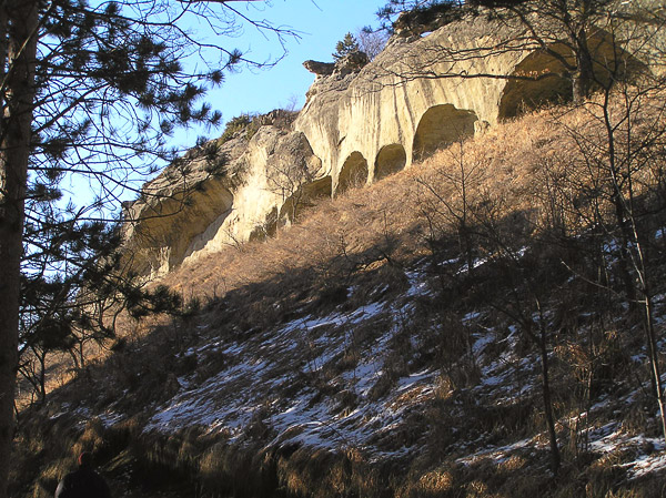 левой стороне. Скалы получили свое название от небольших пещерок наверху