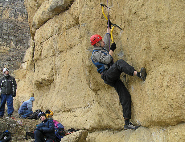 стоять (nina: «Ань, ну ты разве не женщина? Сделай, чтоб стоял!»), подбираешь ноги, слегка скручиваешься, одну руку оставляешь в блоке, другой делаешь перехват. Отдельная история — это кошки. Я так и не поняла толком, как в них лезть? В тапках мне показалось гораздо удобнее. Вобщем, что я могу сказать.. Dry-toolling rules!!! Очень хочу и дальше заниматься этим!! А также попробовать ледолазание!