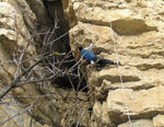 слегка напоминают Подольский карьер, при чем правая часть массива – с весьма внушительным нависанием! Завеска везде верхняя, пробитых маршрутов нет. Повесив две веревки, Юра вдруг