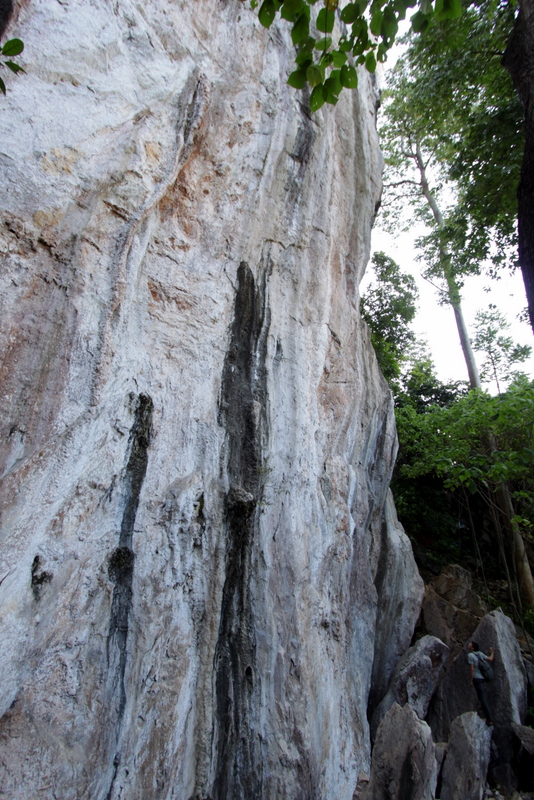 Первый Damai. Со слов местного скалолаза Энди – самый популярный сектор для местных скалолазов. Что увидел я – трасс много, пробиты хорошо и часто, станции безопасные, однако – уровень не превышает 6с и похоже даже это не соответствует действительности. Скалы колючие, новые трассы (в левой части сектора) не почищены. Может быть это и самый популярный сектор – но других скалолазов в этот день там не было. Добраться от станции метро Batu Caves можно как пешком (жарковато однако), так и на такси (минут 5-7 езды). Водителю скажите, что ехать надо до мечети Kampung Melayu Batu Caves.