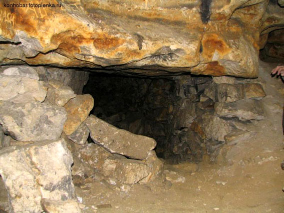 Еще стоит сказать про гроты. Гроты – первоначально тупиковые «аппендиксы» штрека, которые народ оборудует под проживание. Есть гроты с совершенно замечательно выложенными из камня лежанками, столами, стульями, оборудованные стационарными подсвечниками и т.д. Некоторые гроты полуискусственного происхождения – вручную достраивалась кладка, если грот был неглубокий и в проходном месте. Входы в грот могут быть ростовыми, а может быть дырка размером 50х40 см. Как получится.