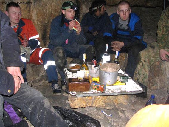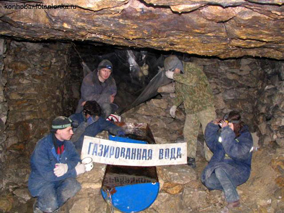 В системе есть несколько мест, где можно набрать воды, так называемые водокапы. Называются так потому, что там капает вода, как нетрудно догадаться :). Под потолком наклонно подвешивается полиэтилен, под него ставится емкость – и водосборник готов. Так что, имея достаточно еды (и водки :)), можно неделями не выходить наружу. Что многие и делают. Разговаривал с человеком, который на тот момент жил там уже 3 месяца не вылезая. Один из местных старожилов.
