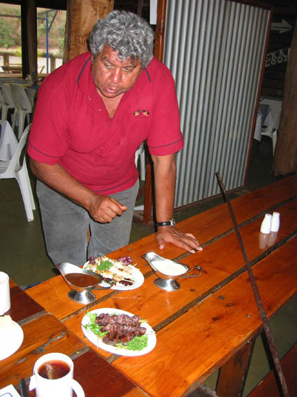 Фред встретил нас на выходе и повез на аборигенский тур. Остановились на ферме, где стригут овец и разводят кенгуру на мясо. Фред достал палку, напоминающую копье и сказал, что сейчас пойдет и убьет нам кого-нибудь на ланч. Вернулся с тарелками, полными жареного мяса.