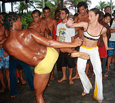 Чем славится бразильская культура? Футболом, карнавалом, Паоло Коэльо, белыми штанами, рабыней Изаурой на фазенде и пляжем Копакабана. А еще, на заре своих занятий по карате я слышал про капоейру. Про нее рассказывали, что это такое боевое искусство бразильских негров. И что движения у них необычные, приспособленные для драки со связанными руками. Мой знакомый утверждал, что капоейра – самое эффективное из всех боевых искусств именно вследствие неожиданности кувырков и ударов ногами из положения лежа.