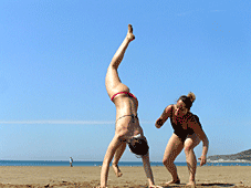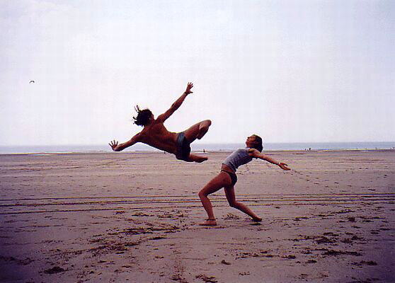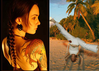 В следующий раз наблюдал игру Талиесина с его продвинутой ученицей Беккой. Посмотреть на такое стоит. Похоже на четко синхронизированный спектакль. Мелькают руки, ноги, капоеристы встают на руки, делают сальто через голову, стойку на одной руке, делают ногами такие вертолеты, что просто сидишь с открытым ртом и тобой овладевает желание этому тоже научиться.
