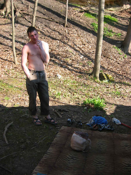 Потом Гленн с Беном устроили нам экскурсию по хитрушкам. Надо сказать, я ожидал что-то вроде второго Фонтенбло. На самом деле Элирия – редкостная помойка. Везде бутылки битые, бревна повалены, под ними хлюпает вонючая жижа. Скалолазы как могут все убирают. Джен нашла использованный памперс и положила в мусорный пакет. На скалах надписи как выбитые резцом, так и намалеванные краской. Я попытался дешифровать одну, но мне сказали, что в присутствии детей лучше не стоит.