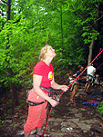 На третий день Хайди повела нас на Junkyard, по-русски, Помойка. Там действительно раньше была помойка. Дорожка к ней усыпана битым стеклом. Из кустов белеют скелеты древних холодильников. На Помойке практически нет спортивных маршрутов – только трад и верхняя страховка. Есть очень неплохие слабы – положительные стенки. Хайди закрепила пару веревок и дюльфернула вниз. А я чего-то зассал. Обошел и спустился по лесенке. Не знаю что нашло на меня. Дня через три узнали мы, что в это же самое время в другом месте New River Gorge женщина разбилась насмерть во время дюльфера. Наша, из Кливленда. Лазала в Kendall Cliffs. Я ее даже встречал. Как это случилось, никто понять не может. Веревка, карабины, АТС – все в порядке. Похоже, что она просто отпустила веревку, а внизу не было никого, что бы дернул и затормозил ее.