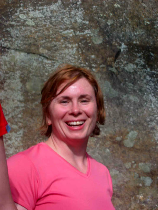 На следующее утро встретились с остальной частью компании: Крисом Алленом, Хайди Андерсон и Джоан Солтис. Ожидалось прибытие потерявшихся в дороге Марка Вилсона (самого сильного скалолаза из нас, я сам скромно на втором месте) и Джен Бонджорно. Хайди знала New вдоль и поперек. Поехали в Буба-сити. Парковка – яма с желтой грязью. К счастью, никто не забуксовал. После двадцатиминутного хайка мы у скал. Народу битком. Маршруты 4а заняты. Прошлись вдоль скал, нашли в одном уголке несколько свободных 5.10. Куда деваться? Придется начинать с 5.10а (6а). Обвешался оттяжками, привязался и полез нечто под названием Good Book. Не так уж и страшно лезется. О падении не думаешь. На ключе позорно завис. Не было идей как лезть дальше, устал и торопился. Долез до конца, но маршрут себе не засчитал.